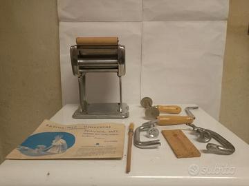 Macchina per pasta vintage e manuale in acciaio inox, marca Ravioli Wit, nella sua scatola originale, questo modello è stato prodotto nel 1975.