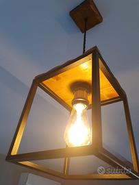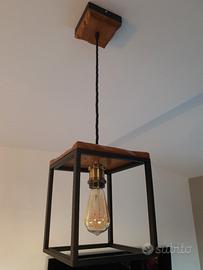 Bellissimo lampadario artigianale realizzato interamente a mano, con struttura in ferro verniciato a polvere e inserti in legno massello di abete.