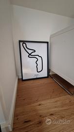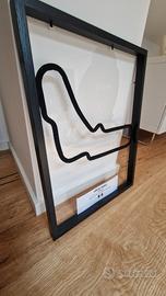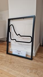 Realizzo quadri con pista in 3d a scelta con o senza fondo bianco. Scegliere pista quando ordinate. Misure 30x40. Colori cornice marrone nero bianco. F1 Moto gp
