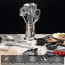 Design durevole e alla moda: questo set di utensili da cucina è progettato per la funzionalità. Gli utensili da cucina progettati utilizzando acciaio inossidabile di alta qualità lo rendono gloria e lusso. Alzerebbe la decorazione della tua cucina.