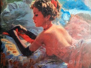 REBECCA SEMINUDA SUL LETTO è un dipinto olio su tela cm 4 0x 30 x 2 che rappresenta una bellissima rgazza dal corpo perfetto con atteggiamenti molto fini, è un nudo artistico senza volgarità, è molto raffinato, ottimo per collezionisti.