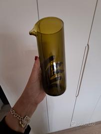 Rebottled caraffa out the way con particolare beccuccio, colore verde oliva 0.6l, ricavata da una vecchia bottiglia di vino, vetro di alta qualità