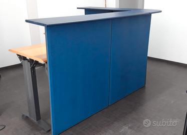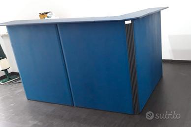 reception composta da piano scrivania in legno con piano dattilo complementare, rifinita con top e screen.