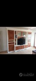 Parete attrezzata in legno massello, perfette condizioni, Dimensioni: Altezza m 2,23 Lunghezza m 3,30 Profondità cm 56 X info 3296312085 Silvio