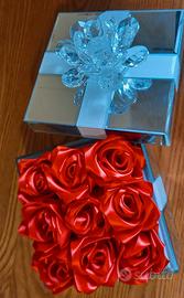 Scatole con rose in raso fatte a mano. Le rose e le scatole possono essere personalizzate in qualunque modo ad esempio aggiungendo perle, strass, brillantini ecc..Dimmi cosa ti piacerebbe e farò per te un preventivo, prezzi economici.