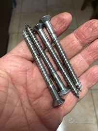 Reggitenda doccia/vasca ad angolo, 140 x 140 tonda tipo Jacuzzi. Acciao inox calandrata 1/4 di cerchio. Compresa di 4 viti per tasselli di fissaggio, sempre in acciaio inox, 6 x 80.