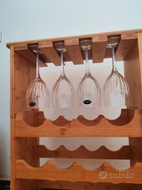 Relaxdays scaffale 16 bottiglie di vino e calici, portabottiglie, 84x24x50 cm, cantinetta in bambù, legno naturale. Mai usato Escluso di calici o da concordare ulteriore prezzo.