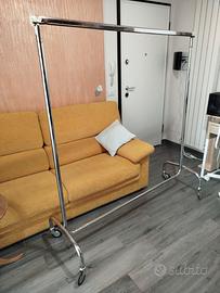 Vendo Rella/stand/appendiabiti con ruote, professionale e pesante, non di quelli leggeri che si piegano e cadono insomma.. alto 165, largo 50, lungo 150 da chiuso ed estendibile fino a 210cm. Si smonta in 4 pezzi come si vede dalle foto, condizioni buone, non è nuovo e immacolato ma fa sempre bene il suo lavoro.