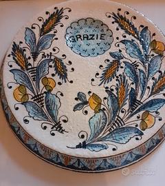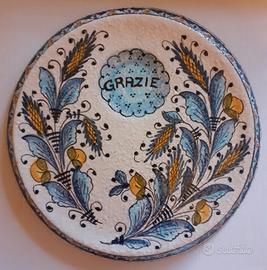 Bellissimo rendiresto da negozio in ceramica di Deruta dipinto a mano, bell'oggetto, grande,, molto elegante, con disegnate spighe portafortuna e abbondanza. È in perfette condizioni pari al nuovo.