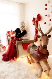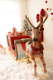 Vendo renna con slitta a grandezza naturale, realizzata in resina resistente, ideale per allestimenti, vetrine, eventi o decorazioni natalizie.