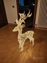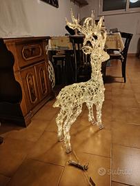 Renna natalizia con 120 luci led bianco caldo alta cm 85 effetto flash scintillante