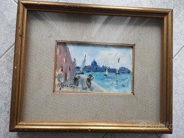 Quadro ad olio su tavola Giudecca e zattere pittore veneziano Renzo Zanutto (1909 - 1979) misure 20x12.