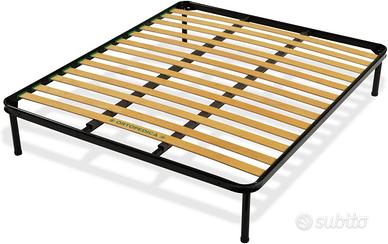 Rete per letto matrimoniale 160x190 con doppia traversa di rinforzo alta 35cm dal pavimento con 4 piedi alti 30 cm e tappi antiscivolo in plastica, montaggio facile e senza attrezzi