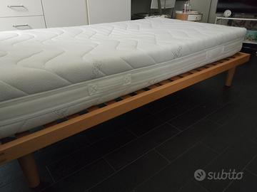 Vendo insieme o separatamente rete a doghe e materasso. Misure 100×190 cm. Altezza da terra 25 cm. Entrambi in ottimo stato, pari al nuovo. Vendo per inutilizzo.
