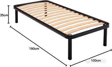 Produzione italiana: Rete a doghe strette 100X190 cm interamente prodotta in Italia Comfort ottimale: L'utilizzo di una rete a doghe può essere una soluzione per garantire e assicurare un massimo comfort al materasso ortopedico Listelli in legno di betulla: I 12 listelli interni in legno di betulla curvato sono montati nel profilo interno ad U con parastrappi allocati negli appositi alloggiamenti ricavati nel telaio di supporto Dimensioni componenti: Le doghe hanno una dimensione di 64mm, mentre il tubo profilo è di 4x3 cm Verniciatura resistente: La struttura in ferro della rete è verniciata con polveri epossidiche, resistenti alle corrosioni e agli agenti attaccanti, totalmente prive di solventi senza comportare rischi per la salute e l'ambiente Altezza piedi: I piedi hanno un'altezza di 30cm e l'altezza totale dal pavimento è 35cm