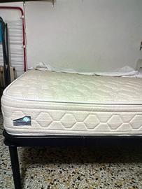 Set composto da rete e materasso: - Rete in metallo con doghe (165cm x 195cm x 40cm). - Materasso Bacciflex con molle rivestito in tessuto (165cm x 195cm x 19cm). Vendo per rinnovo locali. Prezzo trattabile. Spedizione non possibile.