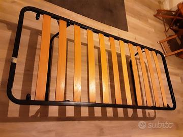 Rete con doghe in legno per letto singolo. Ottime condizioni. Con piedini pieghevoli