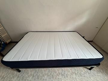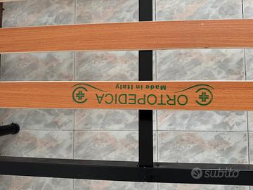 Rete ortopedica a doghe di legno e struttura in metallo.