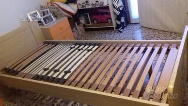 Vendo rete con doghe in legno regolabile in tre posizioni con piedi in legno, misure 190x80cm. Contorno letto colore acero. In buon stato di conservazione.
