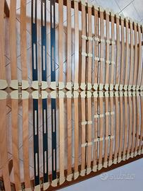 Vendo, causa passaggio a modello con sollevamento motorizzato, rete fissa matrimoniale a doghe di faggio, montate su gommini ammortizzanti, con zone di portata differenziata e variabile a seconda del peso, marca Dorelan. Dimensioni 160 x 190 cm., altezza da terra 30 cm. circa. Le condizioni sono buone, non presenta botte o altri segni ed in più aggiungo anche due listelli a doga di ricambio. Solo ritiro sul posto. No spedizione, se non a carico dell'acquirente a pagamento avvenuto.