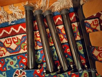 Quattro gambe in acciaio montabili (mediante bulloni) sui quattro vertici.