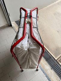 Rete per letto singolo, struttura in metallo, di colore rosso. E' un modello pieghevole.
