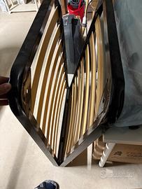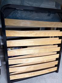 Fantastico letto ad una piazza con doghe in legno ripieghevole, con 5 gambe in ferro verniciato di nero smontabili, molto pratico e leggero ma robusto e da chiuso occupa poco spazio.
