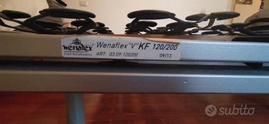 rete wenaflex "v" kf 120/200 con tecnologia austriaca. Misure circa 120x200, compresa dei quattro piedini. Rete regolabile che si alza sia a livello testa che gambe. Prezzo trattabile. Vendo causa cambio letto. Ritiro a mano zona dolo (Ve).