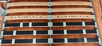 Vendo rete a doghe in legno di faggio con cursori di rigidità, progettata per offrire un supporto ergonomico e personalizzato. Come nuova. Telaio in Acciaio e Barra Centrale di Rinforzo, Supporti Anti-cigolio. Zona Lombare Regolabile: La sezione centrale è dotata di doppie doghe e cursori di tensione (le asole grigie mobili). Spostando questi cursori verso l'esterno si irrigidisce il supporto, mentre spostandoli verso il centro si rende la base più accogliente. Senza piedi di supporto. Vendo per cambio tipologia.