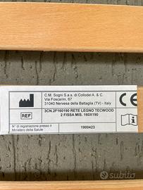Vendo rete matrimoniale "Sogni" made in Italy. Misure standard 160×190 altezza 30 cm compresi piedini. Doghe interamente in legno supporti elastici basculanti con doghe mobili in zona centrale con regolazione rigidità. Presidio medico. Anno 2021.