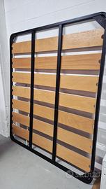 Vendesi rete per letto matrimoniale a doghe larghe con piedini in metallo, ideale per chi cerca un supporto rigido e duraturo. La struttura è molto solida e stabile grazie al telaio in metallo con doppia barra verticale di rinforzo centrale.