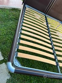 Rete matrimoniale con giro letto e spalliera color cuoio testa di moro,