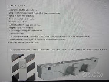 rete motorizzata elettrica a doghe ammortizzate con telecomando senza fili dimensioni 80x190x35h, materasso 7 zone di portata differenziata rivestimento in silver sfoderabile anallergico trat. 80x190x20h hycare anallergico SPEDIZIONE A CARICO eE CURA DELL'ACQUIRENTE O RITIRO IN SEDE