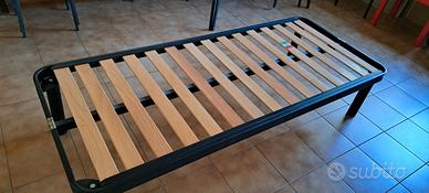Rete ortopedica rinforzata, con doghe in legno e barra longitudinale. Gambe smontabili. Materasso anallergico in schiuma. Prodotto italiano. Prezzo non trattabile