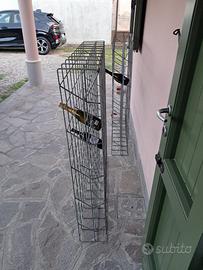n° 2 griglie portabottiglie salvaspazio da fissare o appendere a muro, dim. m 1,00 x h.1,18 x spess. 0,18,; capacità n° 100 bottiglie cadauna