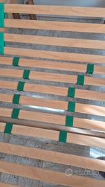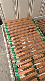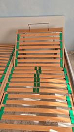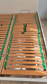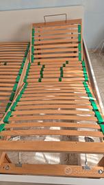 Rete Made in Italy con telaio in legno multistrato di faggio e polipropilene, angolari stondati antinfortunistici ad alta resistenza. 26 doghe in faggio con cursori di rigidità in caucciù collocati nella parte centrale e forate nella zona spalle. Sistema di elevazione manuale con alzata separata della zona spalle e della zona gambe. Porta doghe basculanti e ammortizzanti in caucciù. 2 pezzi disponibili. Prezzo 350 a rete
