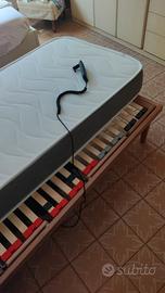 RETE E MATERASSO MAI USATI. Vendo a meno della metà del valore di acquisto. Rete elettrica SINGOLA 80 X 190 con doppio motore OKIN + materasso LIGHT RELAX in memory foam. Legno di faggio di prima qualità, materiale atossico e resistente, questa rete rappresenta la soluzione più naturale alle nuove esigenze del riposo. Grazie al sistema a doghe basculanti da 35x9 mm ammortizzate è garantito l’appoggio ideale per qualsiasi tipo di materasso (ad esclusione di quelli con le molle). Sistema di ammortizzazione con tecnologia elastometrica SBS-TPEE evidenziano diversi gradi di rigidità nei punti stabiliti per implementare i benefici lungo il profilo della colonna vertebrale. Anche le doghe contribuiscono alla regolazione della rigidità della rete, in quanto nella zona lombare (parte fissa) sono munite di regolatori a scorrimento che possono essere spostati per ottenere rigidità differenti. Questo modello è motorizzato. Ogni rete è infatti dotata di un potente e silenzioso, doppio motore elettrico OKIN (uno per i movimenti della parte superiore testa/schiena e l’altro per i movimenti della parte inferiore gambe/piedi), racchiuso in un'unica scocca. Il motore dispone anche del vano batteria tampone da 9V, per emergenza in caso di mancanza di corrente elettrica, in modo da riportare le reti nella posizione naturale orizzontale. I movimenti sono attivabili attraverso un apposito telecomando collegato al gruppo motore tramite apposito cavo. La rete Luxury è fornita di piedi standard da 30 cm che porteranno la rete ad un’altezza totale da terra di 38 cm (appoggio del materasso sulle doghe). Supporta un carico fino a 120 chili (materasso incluso).Il materasso è composto da uno strato superficiale di memory foam. Entrambi le superfici sono pantografate in modo da potersi tranquillamente adattare alle reti a doghe.