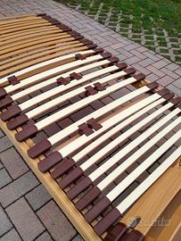 N.2 reti a doghe Flectosan 2000 in legno di faggio, accoppiabili per ottenere un matrimoniale. Ogni rete ha 4 zone di doghe differenti e con regolazione elasticità, 3 zone di sollevamento-inclinazione, gambe smontabili, apertura totale con molle a gas per pulizia. Dimensioni cm 189x 79x 36-38(punto alto doga). Vendo a 65 Euro/cad. oppure a 120 Euro la coppia.