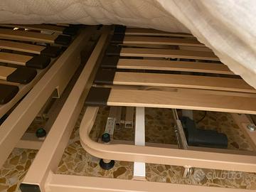 Due reti motorizzate ogni rete ha 2 motori alzata testa, alzata piedi, alzata orizzontale, tutto indipendente, doghe di faggio. 2 telecomandi uno lato sx uno lato dx. Pari al nuovo, Materasso 100% lattice marca Pirelli