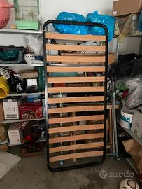 Vendo una rete matrimoniale con doghe in legno con struttura in metallo (i piedi sono smontati e completi di tutte le viti) , ha una doga fuoriuscita dai supporti (non è rotta)+ due reti singole con doghe in legno (la prima con struttura completa in metallo). 70€. Ritiro a carico dell'acquirente