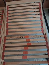 Vendo due reti a doghe singole accoppiabili mediante delle apposite staffe diventa una rete matrimoniale ,sono molto particolari a livello qualitativo in quanto sono ortopediche e regolabili come inclinazione e per peso con dei cursori visibili in foto...sono pari al nuovo usare pochissimo di legno di ottima qualità...per immediato realizzo vendo a questo prezzo