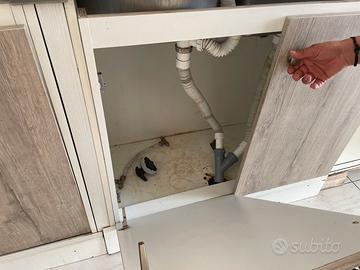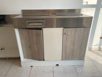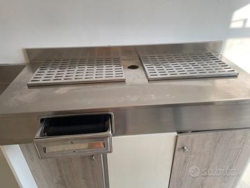 Diviso in due pezzi, uno con lavandino giá istallato, l’altro utilizzato per macchinetta del caffe.