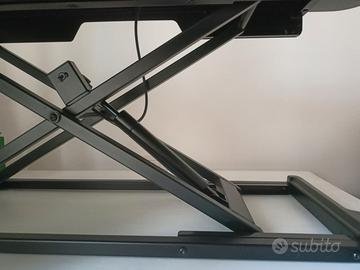 Rialzo da scrivania per lavorare in piedi. Si regola facilmente con una leva all' altezza desiderata. Misure 95x60 cm, altezza tutto abbassato 15 cm e si alza fino a 45 cm. È in ottime condizioni.