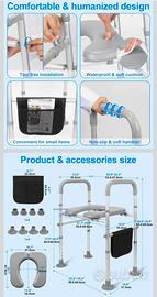 DESIGN MULTIFUNZIONALE - Il sedile wc rialzato per anziani è progettato come 3-in-1,sedia da doccia, WC portatile o rialzo per WC, risparmiando spazio e offrendo maggiore flessibilità