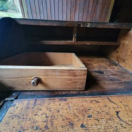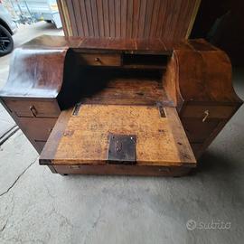 Ribalta antica, impiallacciata in legno di noce,con cassetto e segreti.