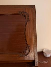 Segretarie / mobile con ribalta e cassetti antico in legno decorato e gambe classiche. Internamenre diciso con due cassetti ed una mensola. Elegante si adatta ad ambienti moderni e classici. Ottima soluzione anche come scrivania / ufficio.