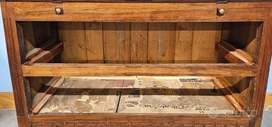 sempre dalla greca tipica di questa epoca, mentre il pannello centrale è di massello di noce, con abile lavorazione per consentire un