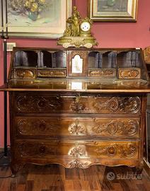 Splendida ribalta antica in noce massello, finemente scolpita con motivi floreali in stile Luigi XV.