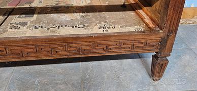 sempre dalla greca tipica di questa epoca, mentre il pannello centrale è di massello di noce, con abile lavorazione per consentire un