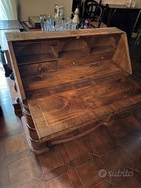 Vendo ribalta/scrittoio in legno massello, solida e ben proporzionata, dotata di piano ribaltabile, cassetti e vani portaoggetti interni.